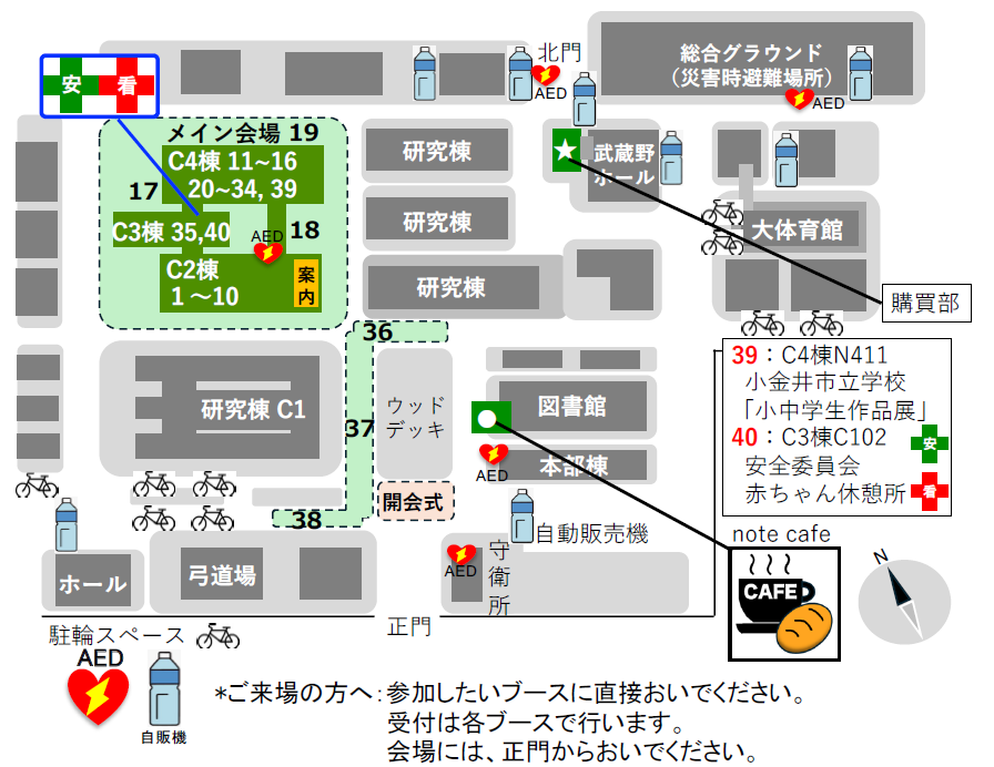 37 | ウッドデッキ西 | 小金井消防署 | 火災実験+起震車・VRでリアルな災害体験 | 12345 | 50 |